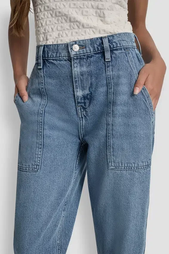 A Versatile Staple for Everyday Wear, These High-Rise Jeans Feature a Utility-Inspired Silhouette with a Medium Rinse Wash. Crafted in 100% Cotton Denim, They Offer a Flattering High-Waisted Fit and Practical Pocket Detailing.