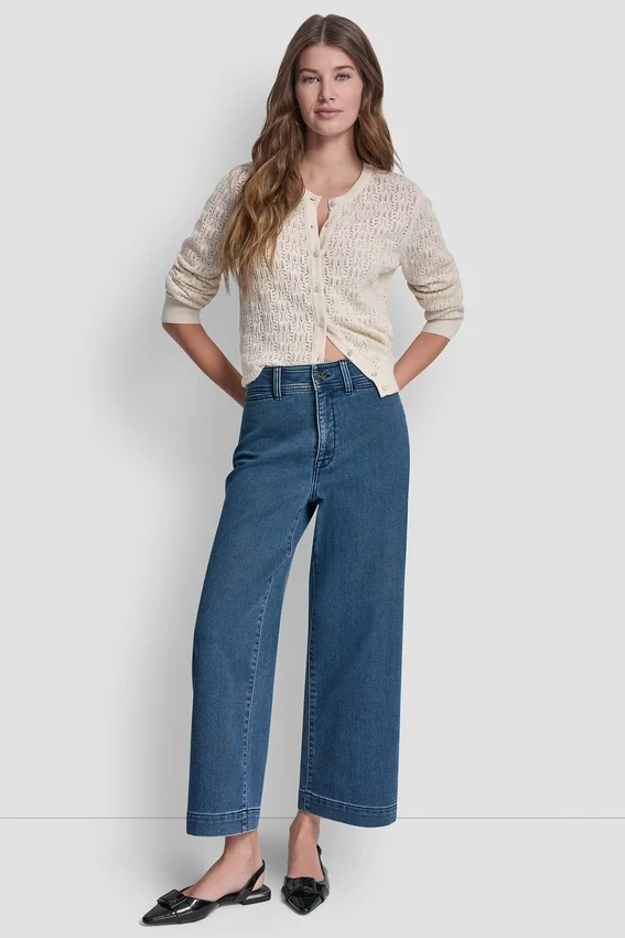 High-Rise Ankle Pant Zip and Button Closure Straight Leg Cropped Length Two Front Hand Pockets Two Back Pockets 82% Cotton, 17% Polyester, 1% Elastane Spandex Machine Wash Cold, Tumble Dry Low Imported Style #: Dj6P3125