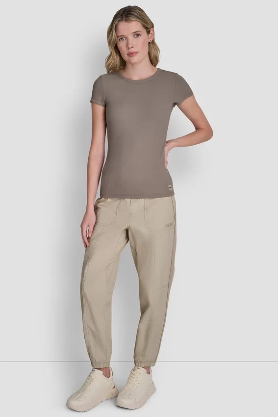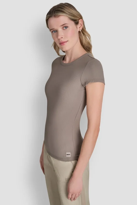Pull-On Slim Fit Crew Neckline Short Sleeves Rib Knit Fabrication 88% Polyester, 12% Elastane Spandex Machine Wash Cold with Like Colors, Gentle Cycle; Non-Chlorine Bleach When Needed; Tumble Dry Low Heat; Cool Iron if Needed Imported Style #: Dp6T1325
