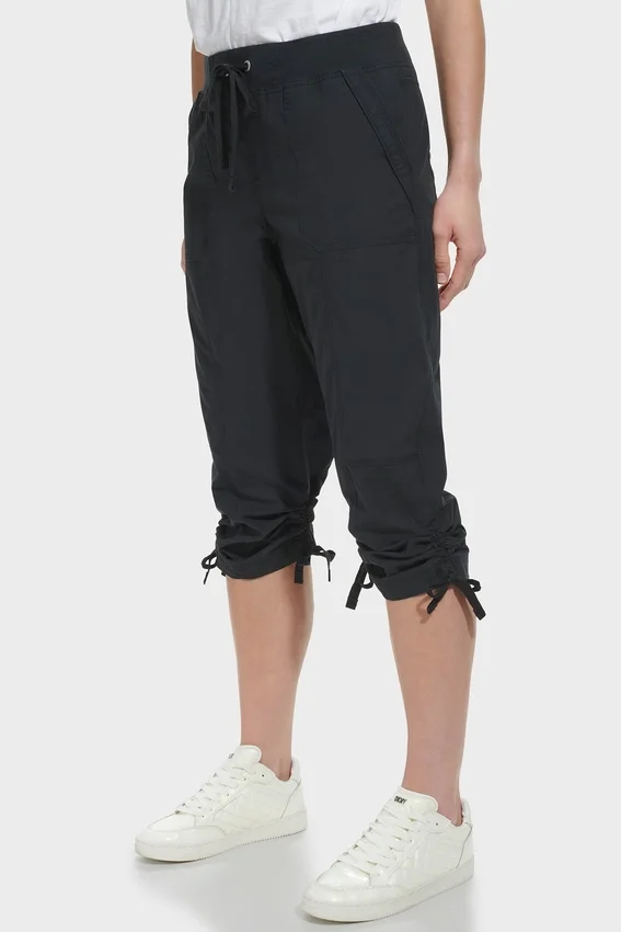 High-Rise Cropped Convertible Shirred Utility Capri Pant Diagonal Utility Pockets on Hip, Utility Back Flap Pockets; Pulls on, with Drawstring Waist Brushed Cotton-Poplin: 100% Cotton Dry Clean or Machine Wash Cold Gentle Cycle, Lay Flat to Dry Imported Style #: Dp4P3415