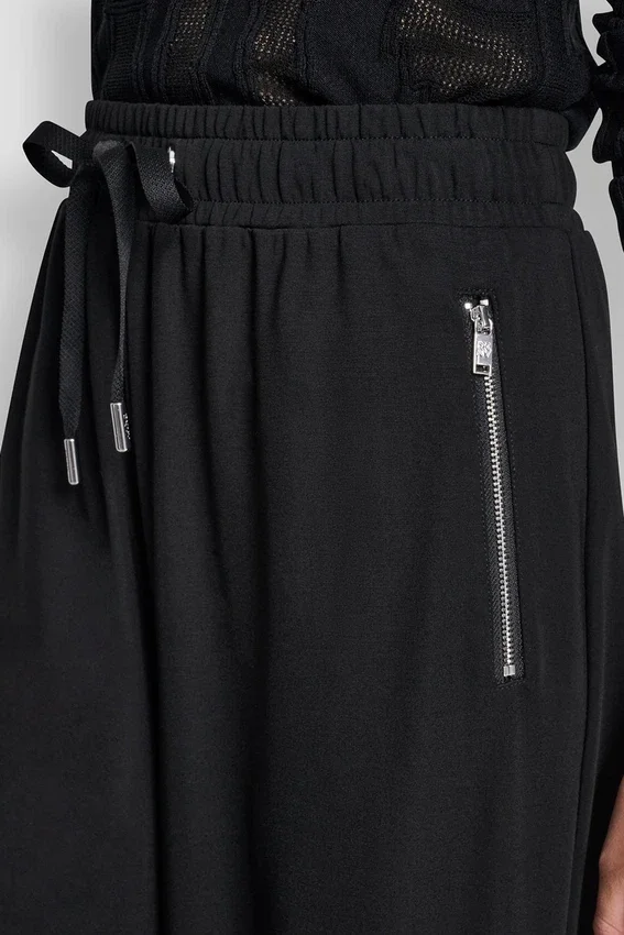 High-Rise Wide-Leg Pant Pulls on, with Drawstring Elastic Waist Two Hip Zip Pockets, with Back Slit Pocket Unlined Soft Ponte: 62% Viscose Rayon, 30% Nylon, 8% Elastane (Spandex) Machine Wash Cold Separately, Lay Flat to Dry Imported Style #: P5Kf8Dtg