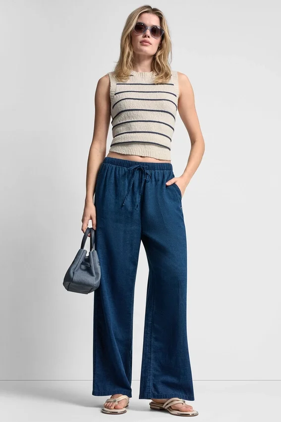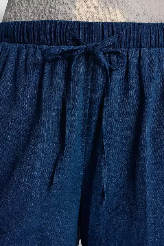The Pull-On Pant That Blends Polish with Ease. Crafted from Indigo Cotton with a Relaxed, Effortless Feel, This Full-Length Silhouette Features a Drawstring Waist and Slanted Pockets for All-Day Comfort That Still Looks Pulled Together.