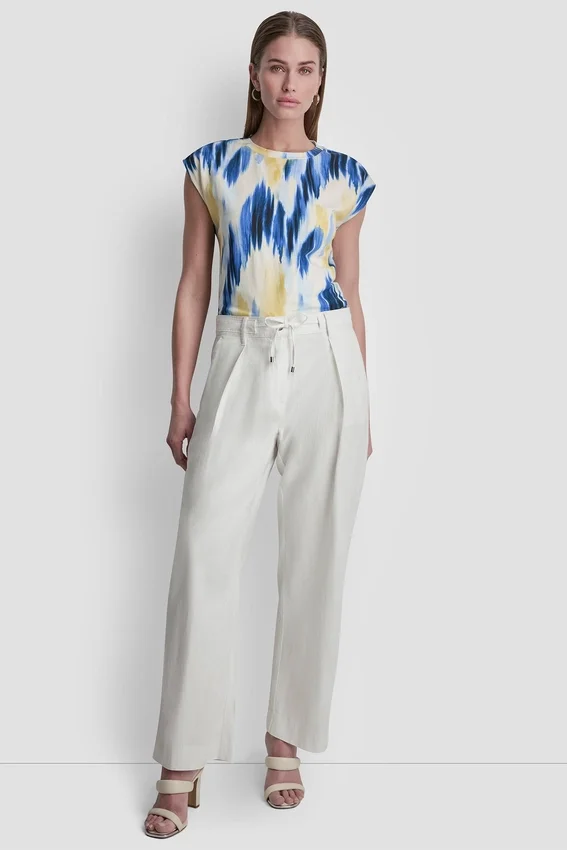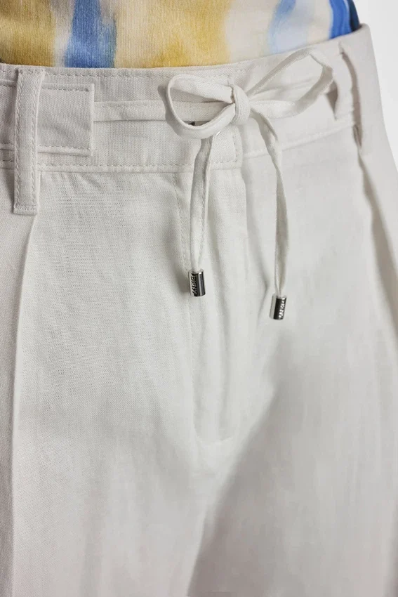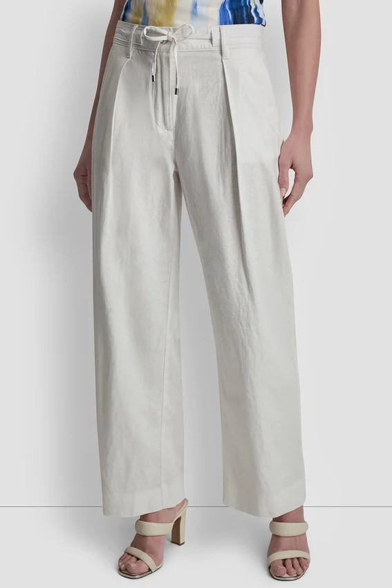 Mid-Rise Pleated Pant Two Hip Pockets Hidden Hook-Bar and Zip Fastening, with Self-Tie Belt Unlined Linen-Blend: 55% Linen, 45% Rayon Dry Clean or Machine Wash Cold Gentle Cycle, Lay Flat to Dry Imported Style #: P6Ckuea9