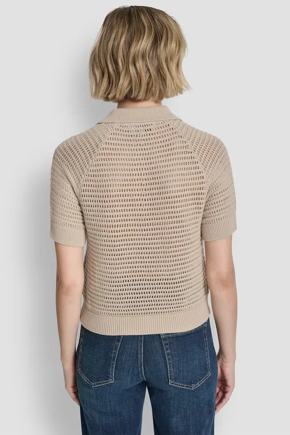 A Lightweight, Short-Sleeve Sweater Featuring a Faux Crochet Stitch and a Front Chest Pocket for Subtle Texture and Casual Polish. Crafted from 100% Cotton, It Offers Breathable Comfort with a Regular Fit and a Collared Polo Neckline for a Classic, Versatile Look.