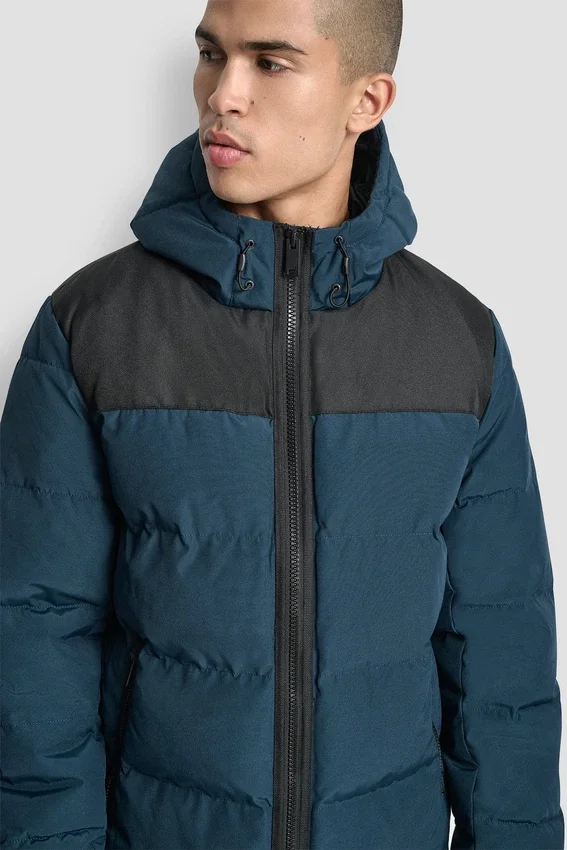 • A Modern Hooded Puffer Designed for Warmth and Style.