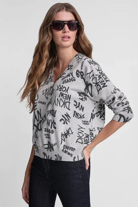 An Athletic-Fit Long-Sleeve Pullover Featuring a Geometric Logo Print and a Classic V-Neckline. Crafted from a Soft Cotton-Polyester Blend, It Offers Comfortable Stretch and Easy Pull-On Wear.