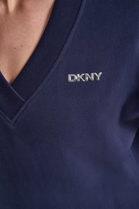 Long Drop-Shoulder Sleeve Deep V-Neck Metallic Bubble Logo Sweatshirt Pullover Unlined Cotton-Blend: 60% Cotton, 40% Polyester Machine Wash Cold Gentle Cycle, Lay Flat to Dry Imported Style #: Dp6T1644