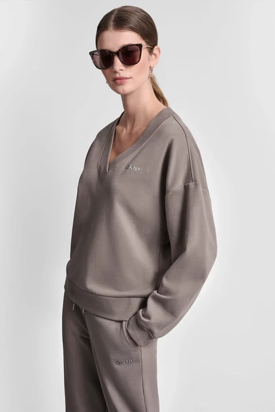 Post-Workouts Call for This Easygoing V-Neck Sweatshirt—Tuck the Front Slightly into Logo-Waist Sweat Shorts for a Sporty-Chic Look That Feels Fresh, Light, and Ready for Anything.