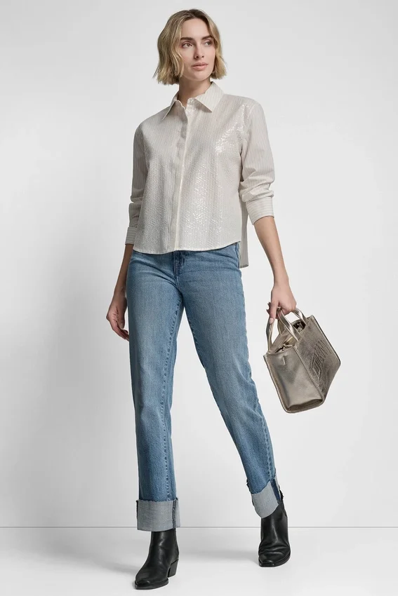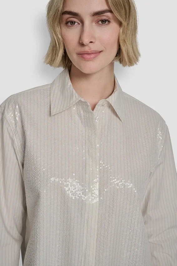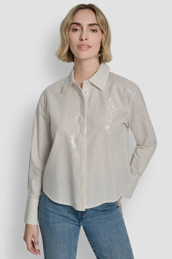 Poplin Button Front Shirt with Sequins