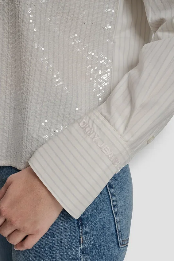 A Crisp Poplin Shirt Elevated with Shimmer—Designed with Logo Embroidery and a Sequin-Detailed Front That Brings a Refined Twist to a Classic Button-Down Silhouette. Versatile, Polished, and Easy to Pair with Denim or Tailored Bottoms.