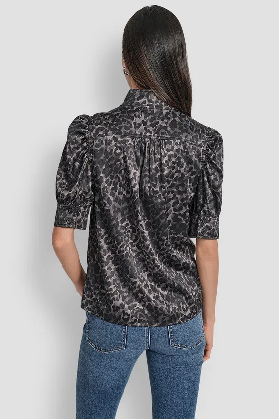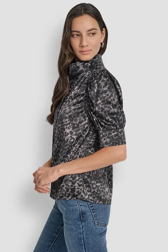 - Short Puff Sleeve Stand Collar Shirt