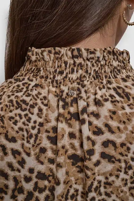 - Long Puff Sleeve Smocked Stand Collar Shirt
