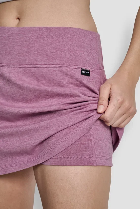 A Sporty Skort Featuring a Built-In Bike Short for Comfort and Coverage in a Vibrant Spacedye Pattern. Crafted from 89% Polyester and 11% Elastane Spandex, It Offers Stretch and Ease of Movement with a Pull-On Closure for Effortless Wear.