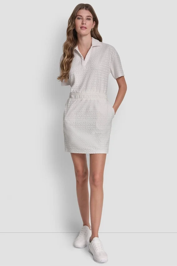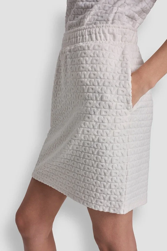 A Playful Mini Skirt with Logo Jacquard Detailing, Designed for Effortless Styling from Casual Sneakers to Dressier Sandals. Pull-On Elastic Waist Ensures Comfort While Maintaining a Chic Silhouette.