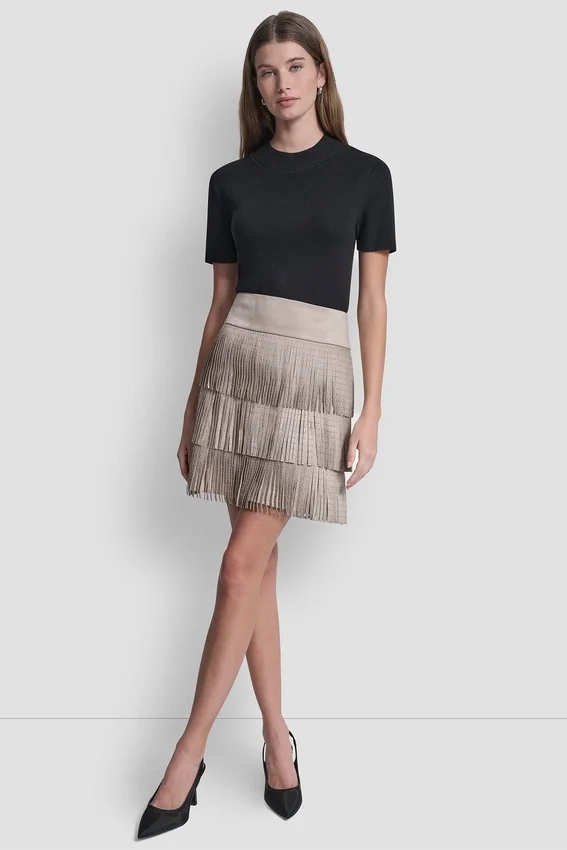 Give a Denim Button-Down a Fun, Flirty Spin with This Fringe Mini—Add Sky-High Heels to Lean into Its Studded Rock-Star Edge.