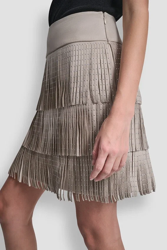 - Studded Fringe Mini A-Line Skirt