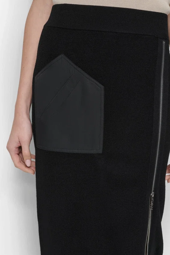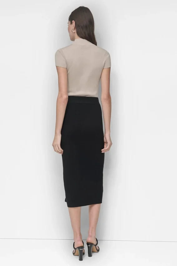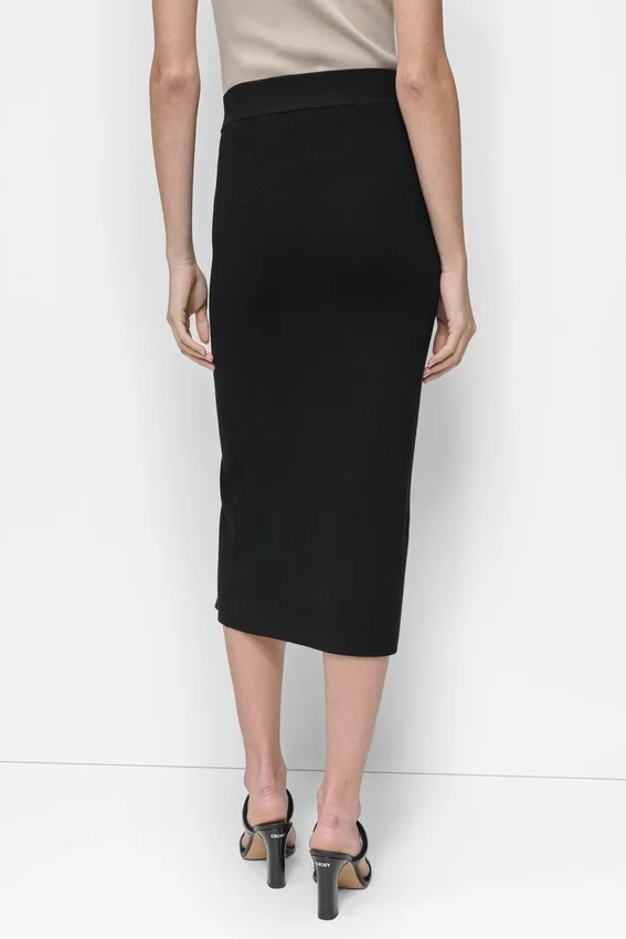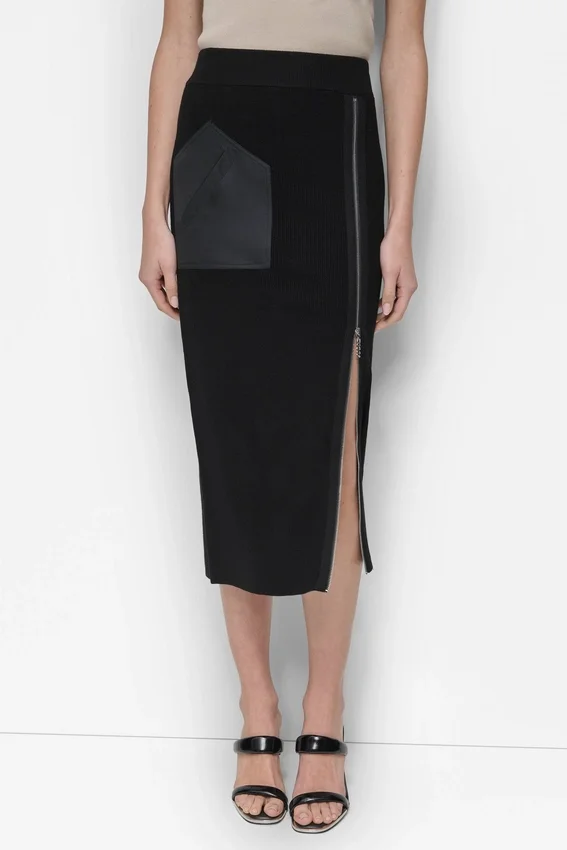- Paneled Midi Pencil Skirt with Zip-Split Hem