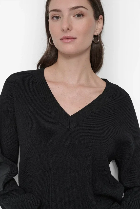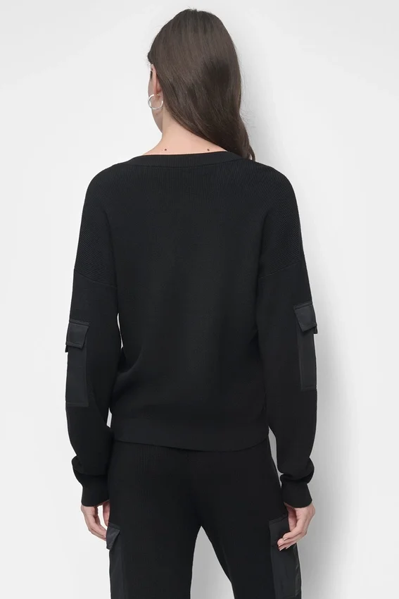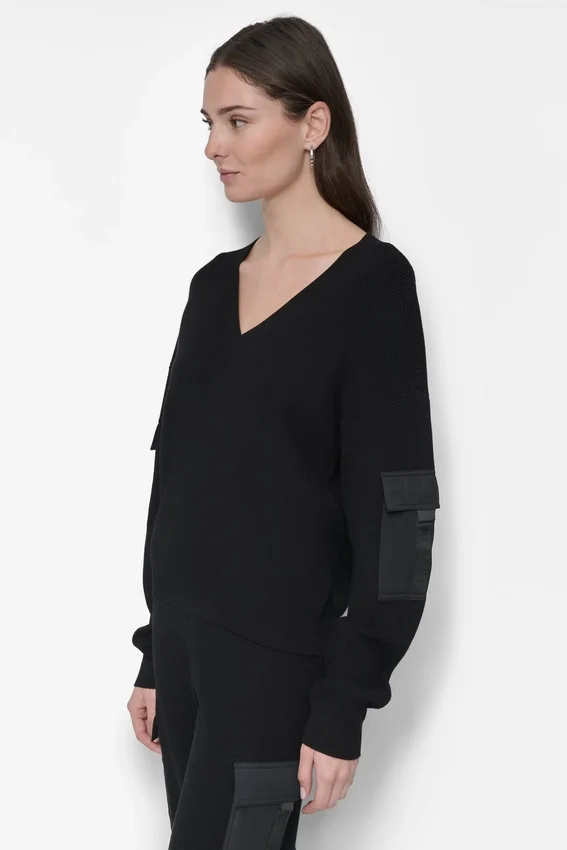 - Long Flap Cargo Pocket Sleeve V-Neck Sweater