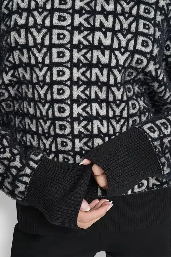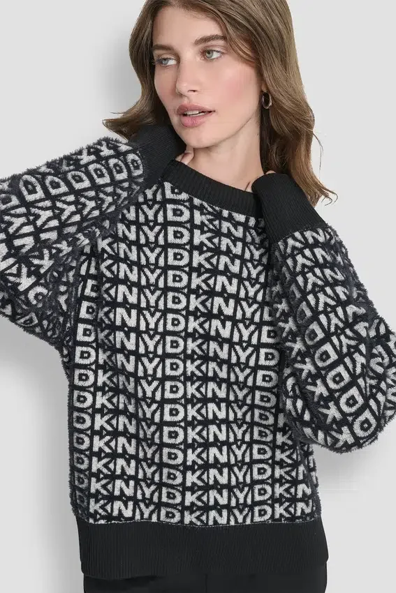 Long-Sleeve Fur All-Over Logo Sweater
