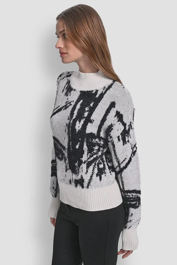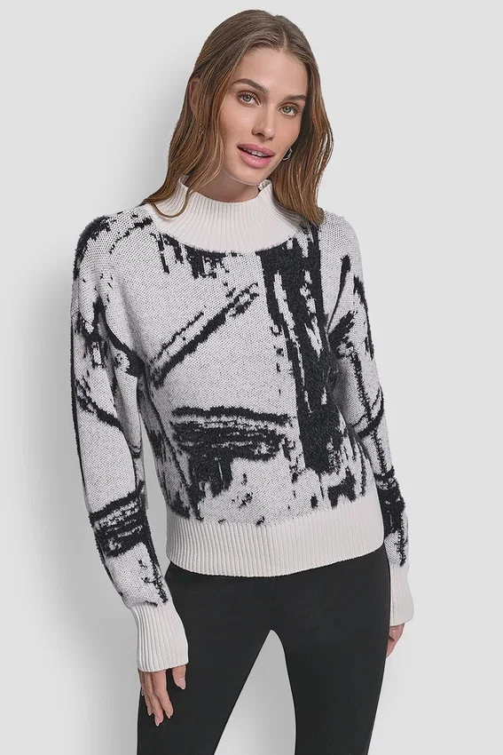 A Cozy Essential with Modern Polish, This Ivory and Black Sweater Features a Mock Neck and Relaxed Fit for Effortless Everyday Style.