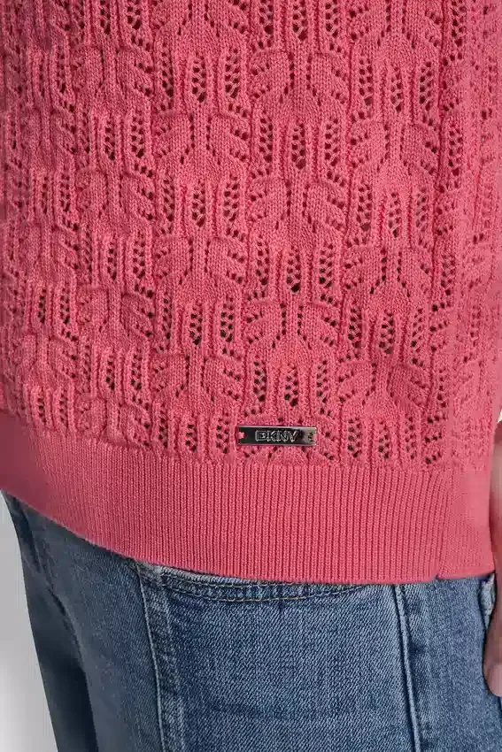 Polished with Delicate Texture, This Short-Sleeve Sweater Features a Lace Pointelle Stitch and a Logo Bar for Subtle, Elevated Detailing. Crafted with a Soft Cotton Self and Polyester Lining, It Delivers Breathable Comfort with a Refined Finish.