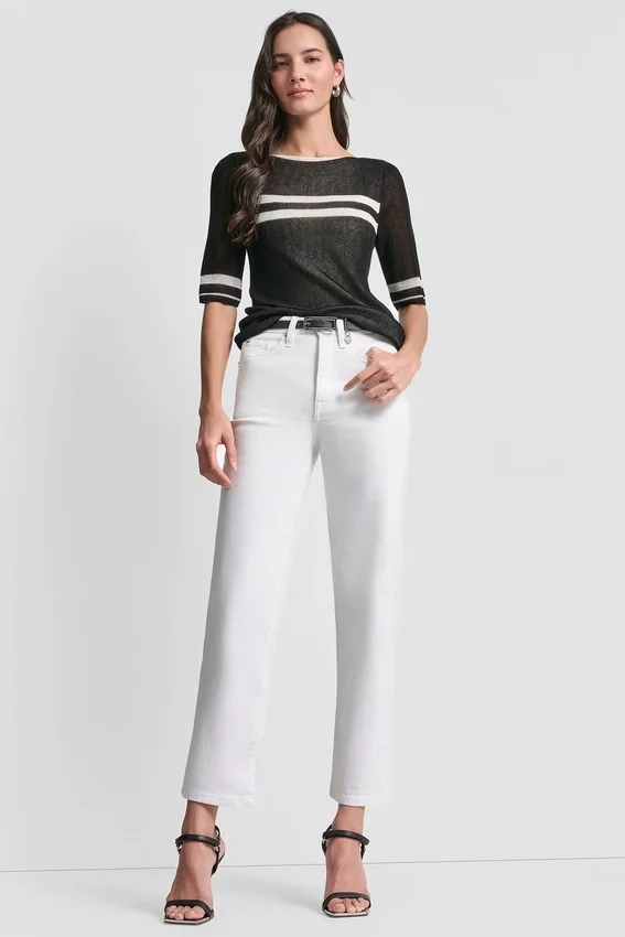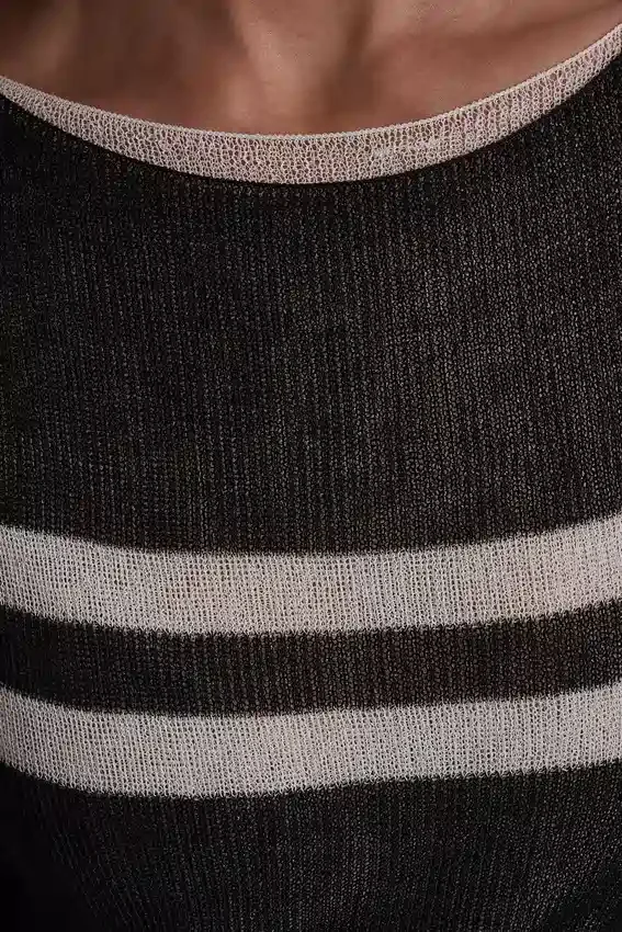 Soft Stripes, Easy Drape, Instant Polish. This Lightweight Sweater is Made for Those In-Between Moments When You Want to Feel Pulled Together Without Feeling Done up. Perfect with Tailored Trousers, Denim, or Layered over a Slip Skirt for Effortless Cool.