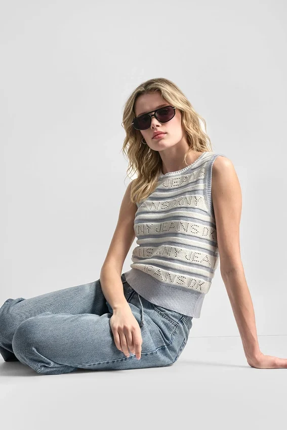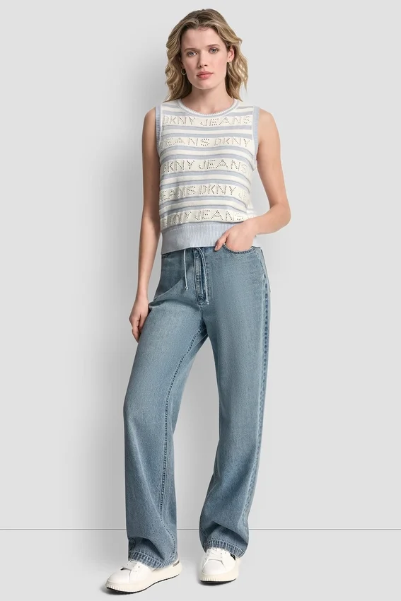 Pullover Style Crew Neckline Sleeveless Pointelle Open Stitch Fabrication Logo Detail 100% Cotton Hand Wash Cold with Like Colors; Only Non-Chlorine Bleach When Needed; Reshape and Lay Flat to Dry; Low Iron on Reverse Side if Necessary Imported Style #: Dj6R0248