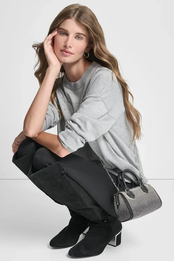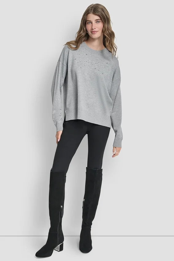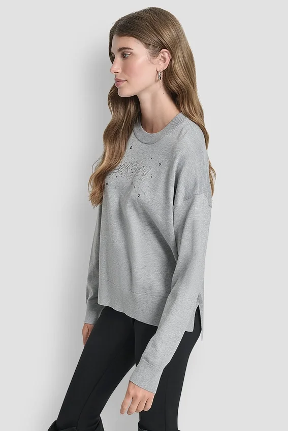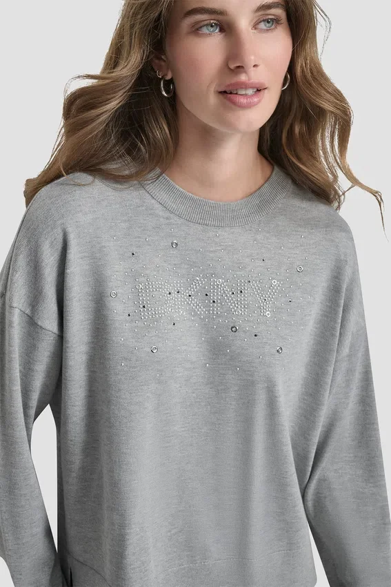 Add a Touch of Sparkle to Your Everyday with This Glitter Logo Pullover Sweater, Crafted in a Soft Spun Rayon Blend with a Clean Silhouette and Subtle Stone Detailing.