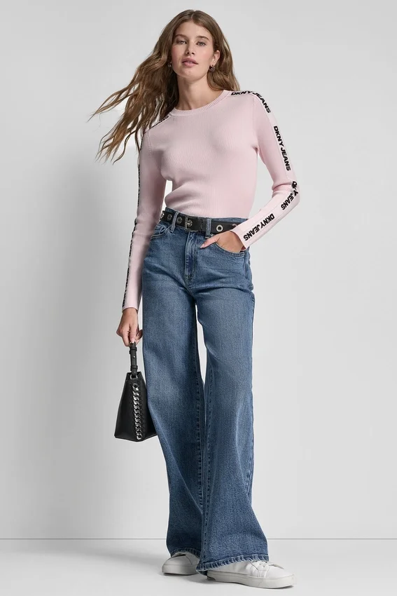 A Refined Everyday Layer, This Ribbed Mock-Neck Sweater is Finished with Signature Logo Trim for a Polished Dkny Touch. Soft, Sleek, and Easy to Style, It Elevates Any Cold-Weather Look.