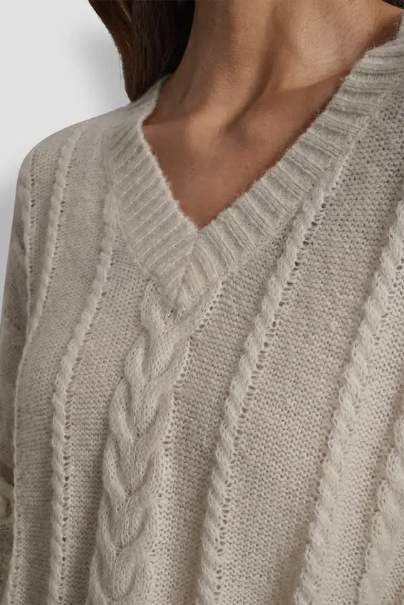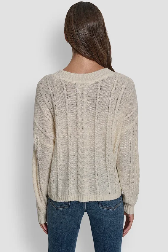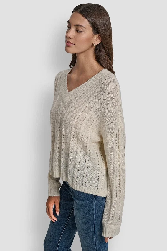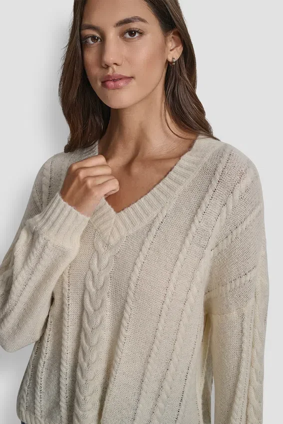 • Dkny Mohair-Like Cable V-Neck Sweater