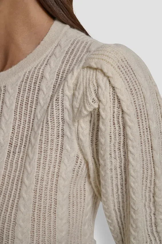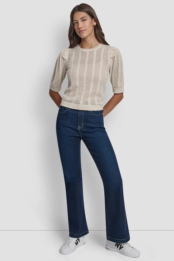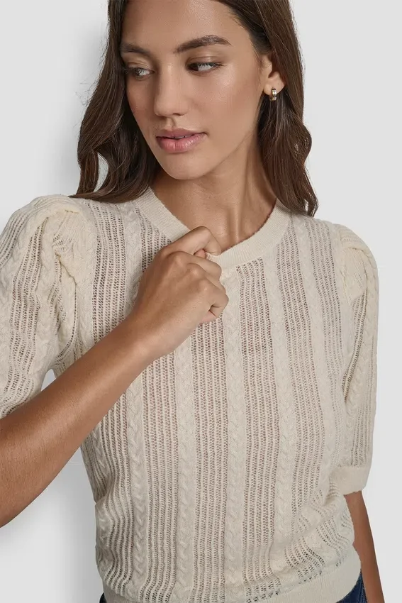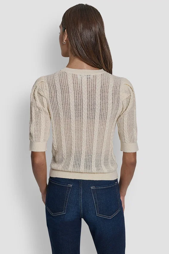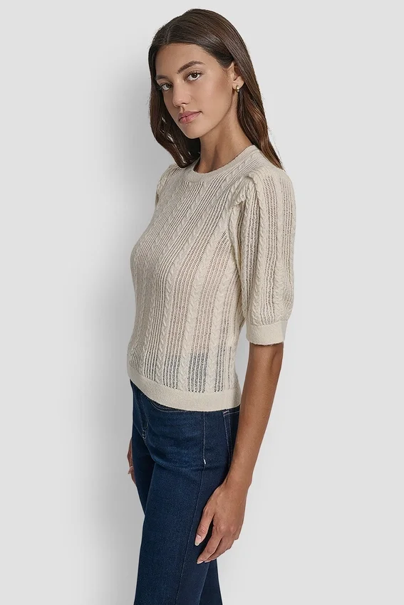 3/4 Sleeve Pointelle Crewneck Imported Style #: Dj4R0343