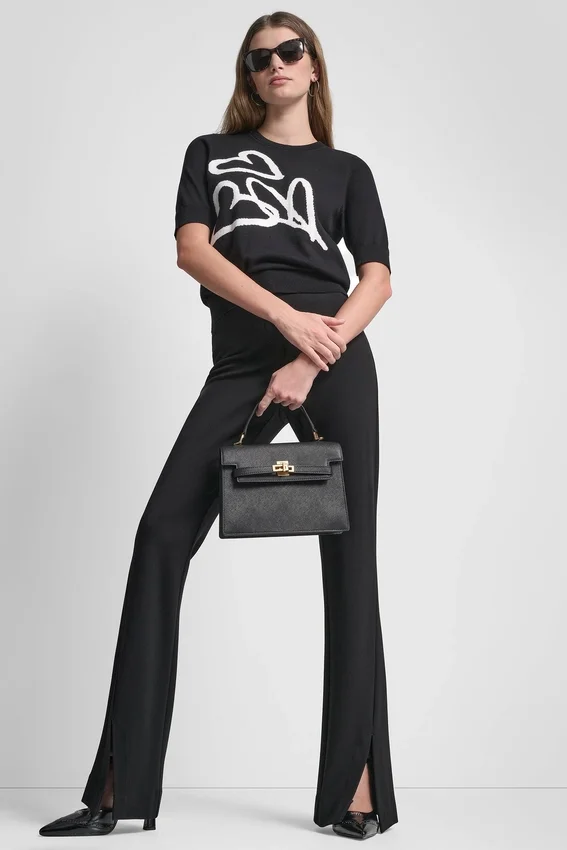 The Graffiti Heart Motif Makes This Jacquard Sweater a Standout, While the Just-Below-The-Waist Fit Mixes It up Effortlessly with Wide-Leg Trousers.