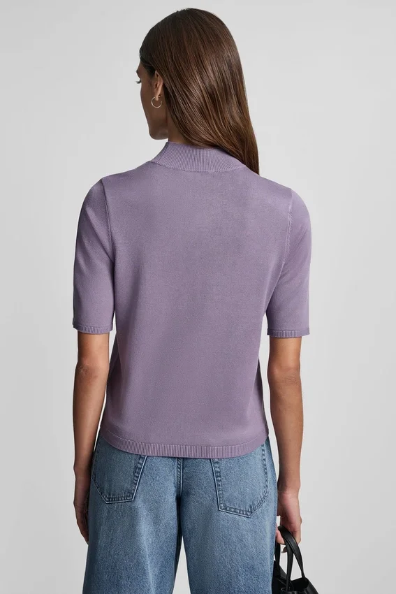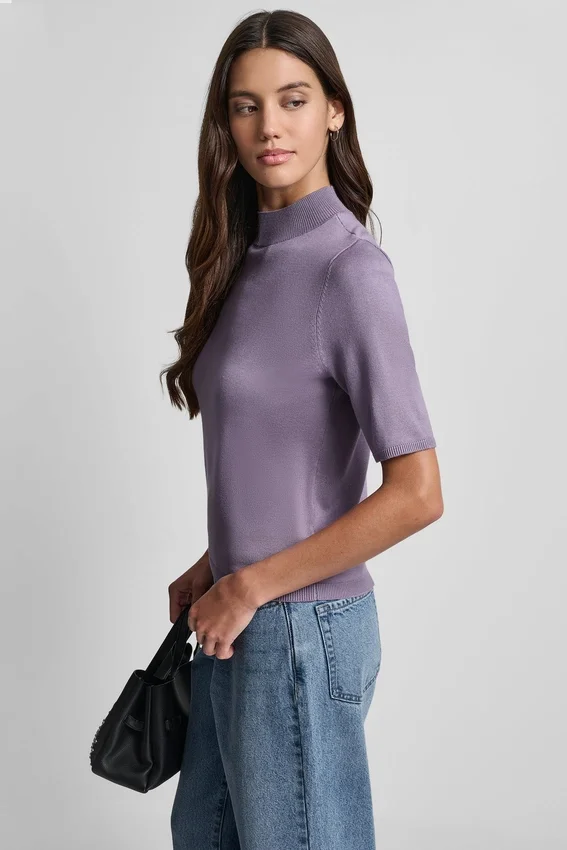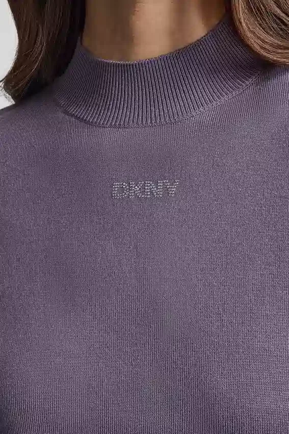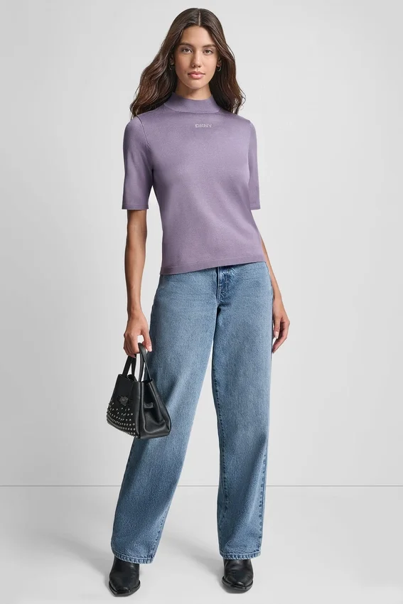 A Sleek Mock Neck Sweater with Subtle Sparkle from a Hotfix Logo, Perfect for Effortless Day-To-Night Styling.