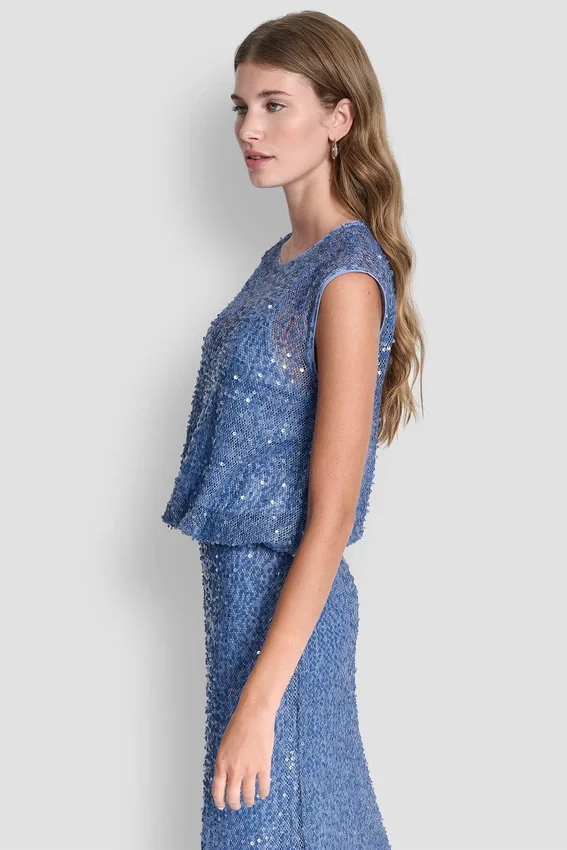Be the first to review “Sleeveless Sequined Bubble Hem Sweater”