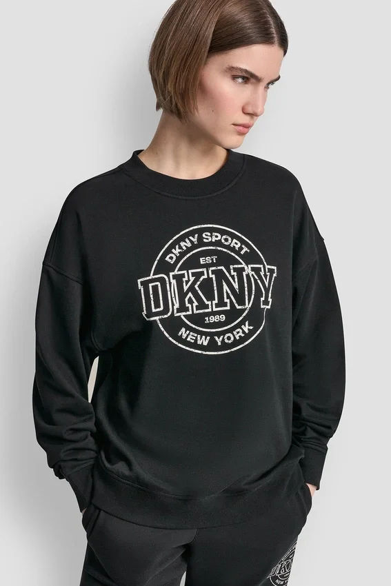 Long Drop-Shoulder Sleeve Crew-Neck Tribeca Collegiate Medallion Logo Sweatshirt Pullover Unlined Cotton-Blend: 60% Cotton, 40% Polyester Machine Wash Cold Gentle Cycle—Do Not Dry Clean—Lay Flat to Dry Imported Style #: Dp6T1657