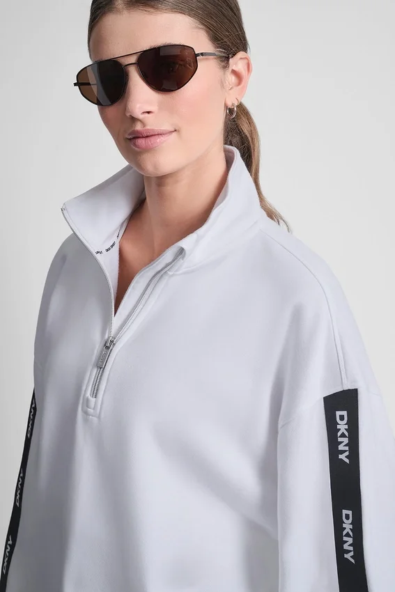 Athleisure with Attitude, No Effort Required. This Quarter-Zip is Made to Move Through After-Class Meetups—Style It with Coordinating Logo Leggings and Sunglasses.
