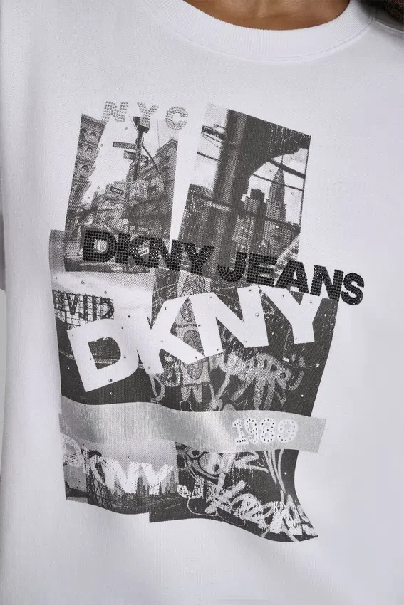- Nyc Dkny Photoreal Rhinestone Foil Logo Crew Neck Sweatshirt