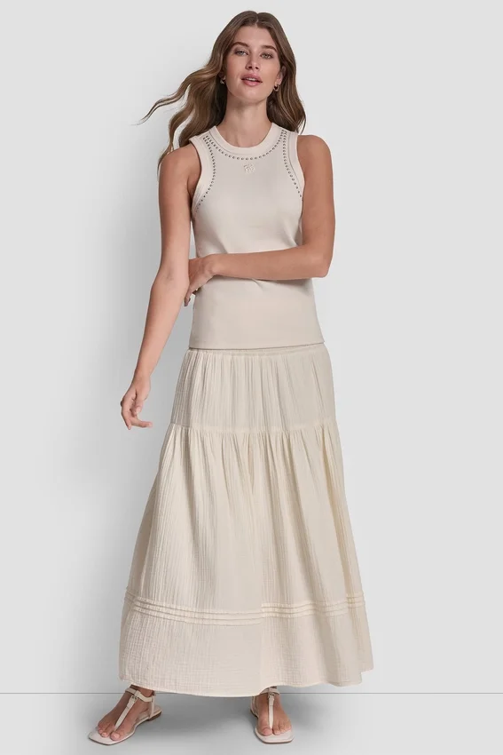 A Modern Essential with Subtle Edge, This Slim-Fit Tank is Accented with Dome Studs at the Neckline and Armholes for a Refined Statement. Crafted in a Soft Cotton-Blend Knit with Added Stretch, It Delivers All-Day Comfort with Elevated Detail.