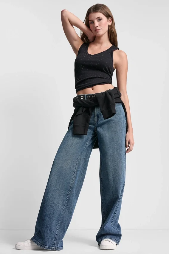 Pull-On Tank V-Neckline Sleeveless Rhinestone Detail Slim Fit 57% Cotton, 38% Polyester, 5% Elastane Spandex Machine Wash Cold with Like Colors, Inside out, Gentle Cycle. Do Not Bleach. Dry Flat. Cool Iron if Needed. Do Not Dry Clean Imported Style #: Dj6T1730