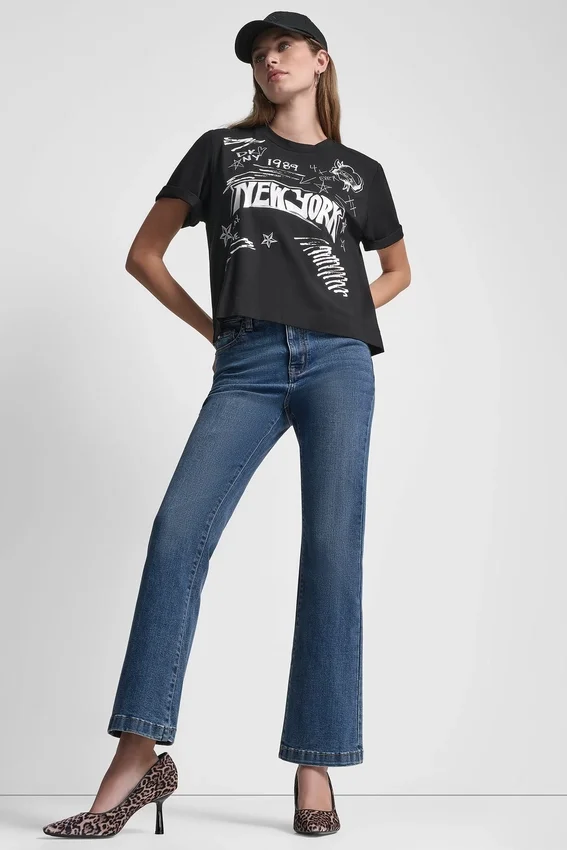 Think of This Graffiti Tee as Your Style Canvas. Hitting Just Below the Waist, It Layers Perfectly over High-Rise Jeans and Ballet Flats for That Easy Nyc Vibe.