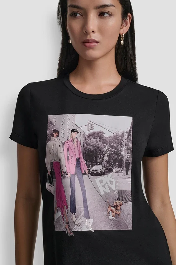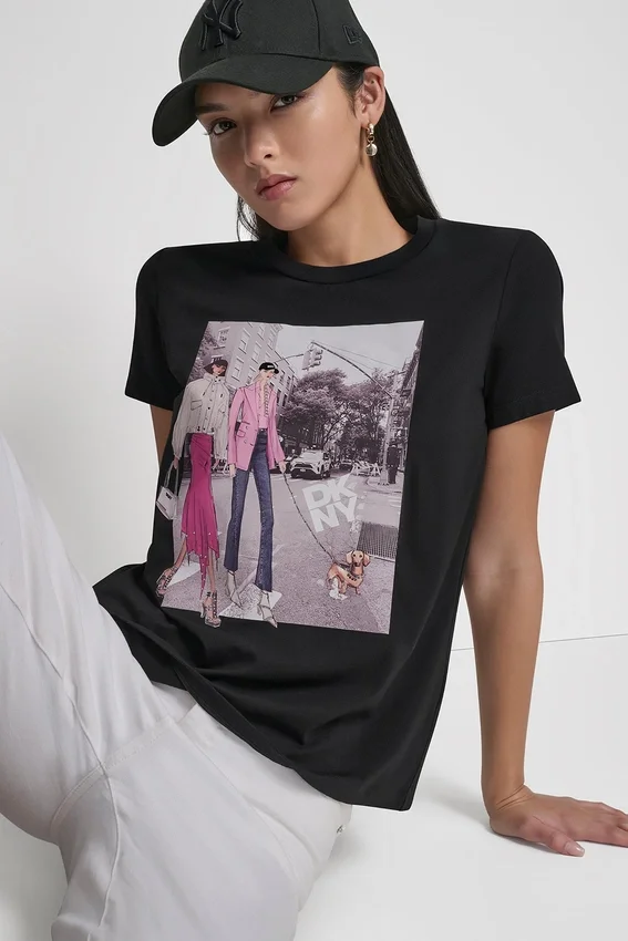 Short-Sleeve Crew-Neck Bleecker Street Conversational Photographic T-Shirt Pullover Unlined Stretch Cotton and Modal-Jersey: 57% Cotton, 38% Modal, 5% Elastane (Spandex) Hand Wash Cold—Do Not Dry Clean or Bleach—Lay Flat to Dry Imported Style #: P61Mrwna