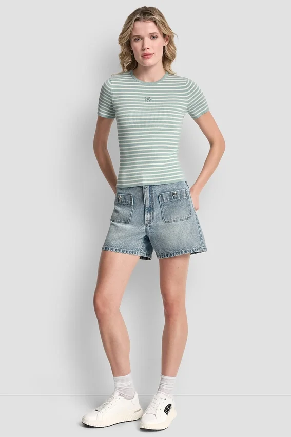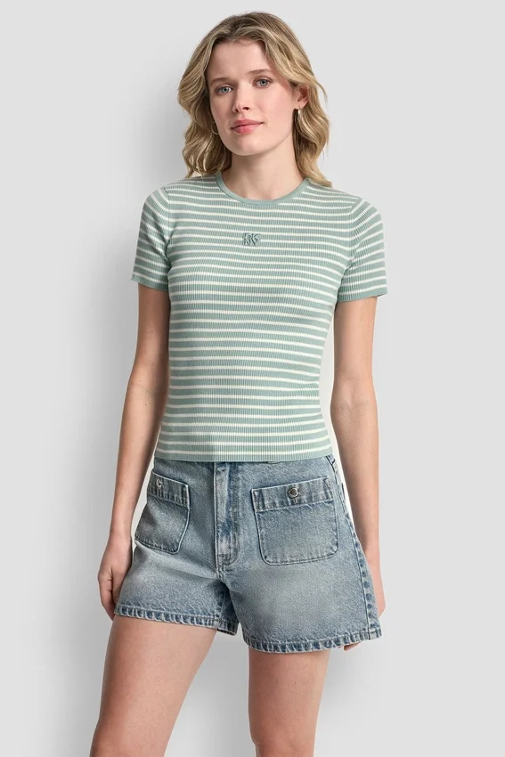 This Striped Ribbed Knit is the Kind of Everyday Essential That Instantly Elevates Your Wardrobe. Designed with a Flattering Slim Fit and Classic Crew Neckline, It’s Perfect on Its Own or Layered Under Jackets Year-Round.