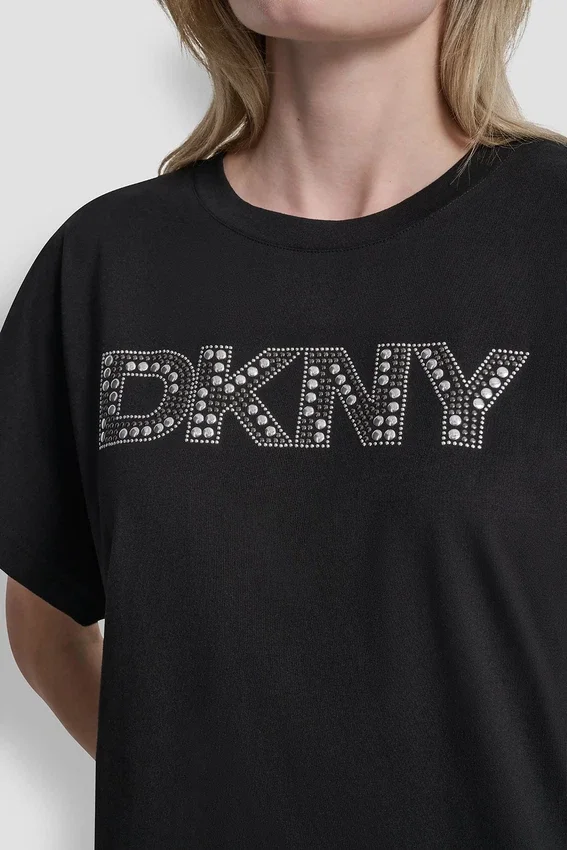 - Short Wide Sleeve Crew-Neck Crystal-Embellished Logo T-Shirt