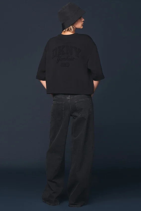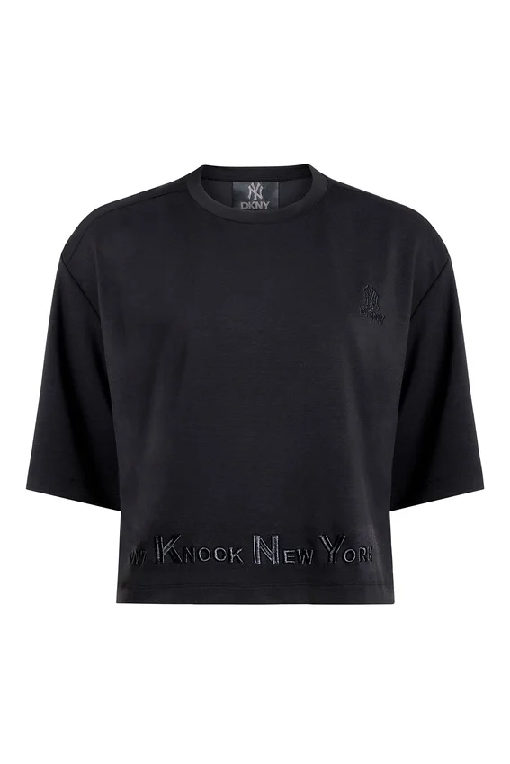 - Dkny X Yankees Short-Sleeve Cropped Crew-Neck Don’t Knock New York-Embossed Tee