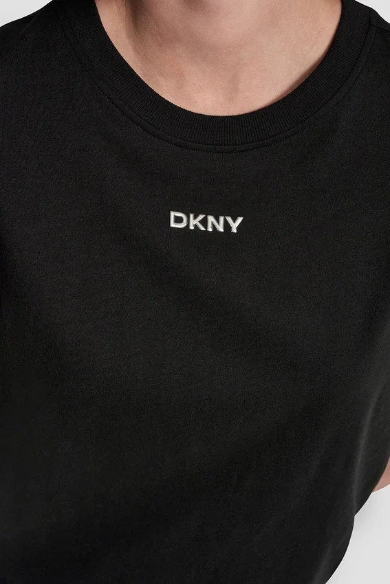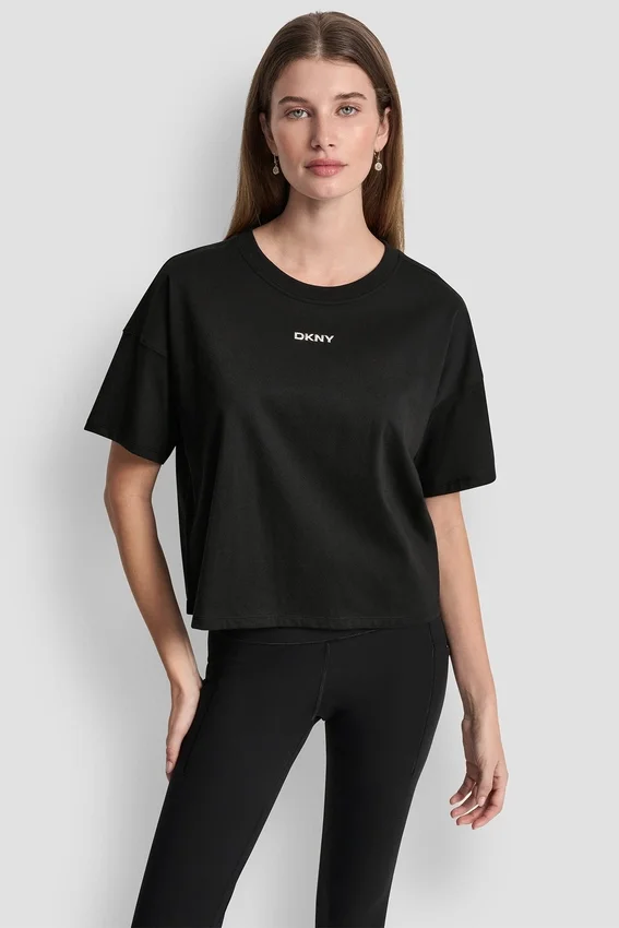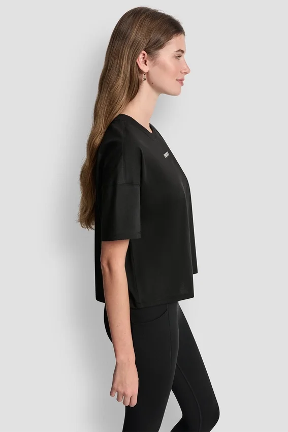 - Short Drop-Shoulder Sleeve Crew-Neck Metallic Bubble Logo-Embellished T-Shirt