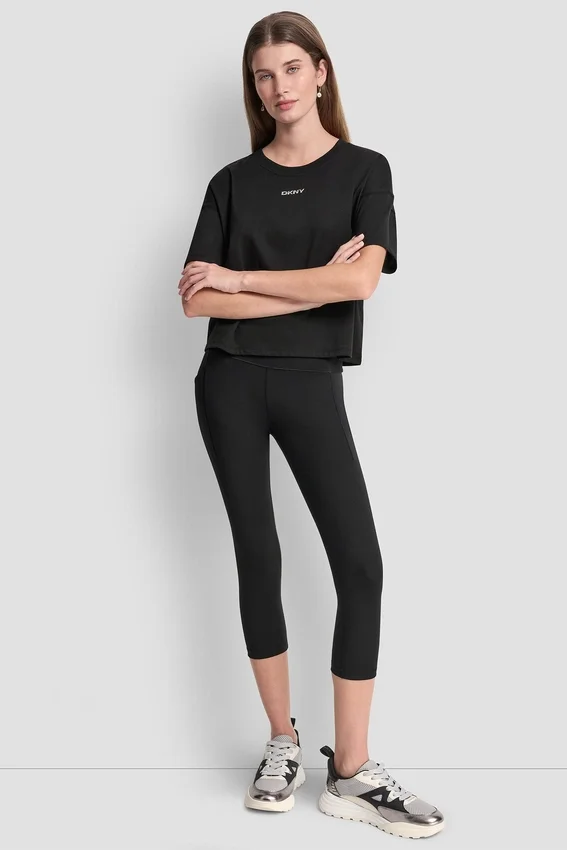 High-Rise Biker Shorts and Lace-Ups Complete the Just-Left-The-Studio Vibe—Layer on This Breezy, Waist-Length Tee for a Look That Moves from Mat to Street.
