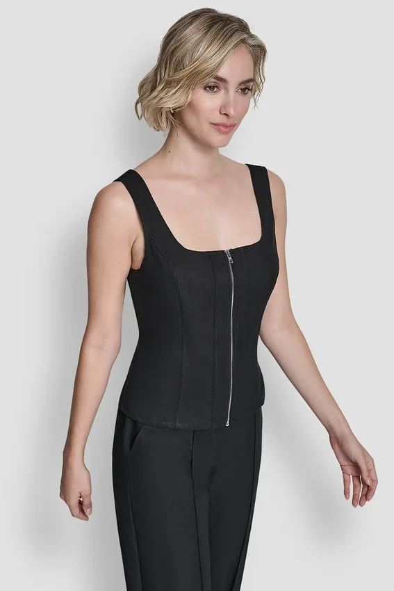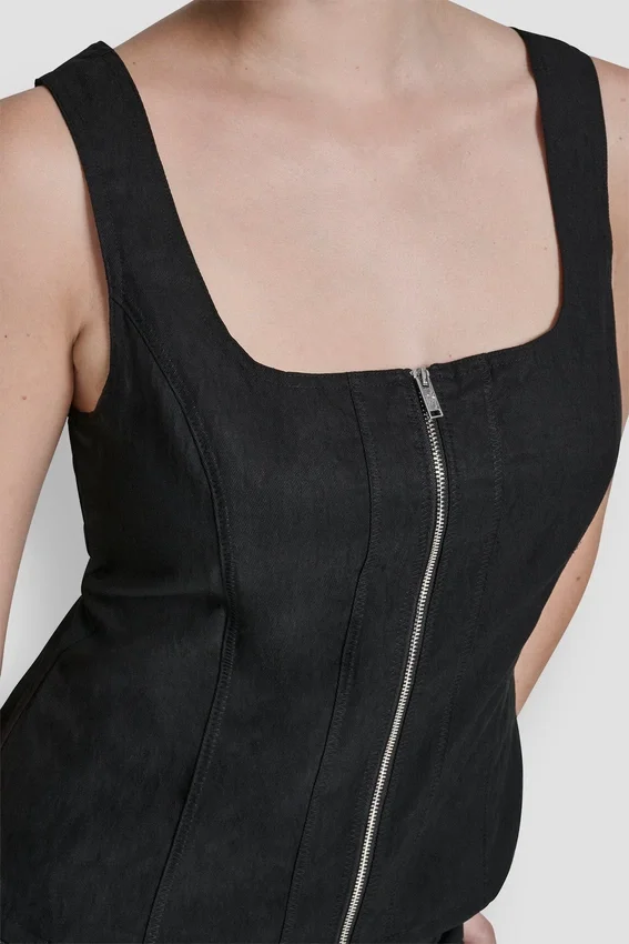 A Sleek, Structured Corset Top Designed with Clean Lines and a Modern Zigzag Stitch Detail. Crafted from a Soft Tumbled Twill, It Offers a Polished, Tailored Look for Day or Night.