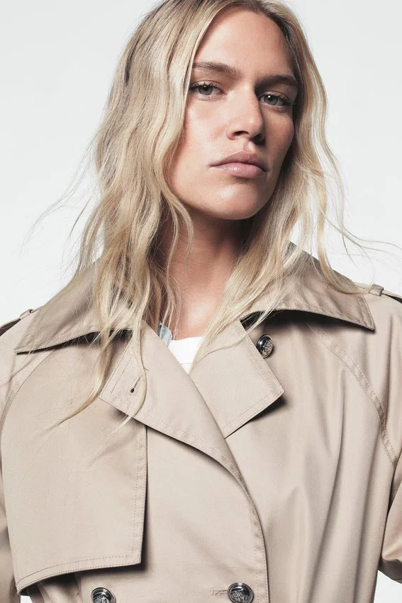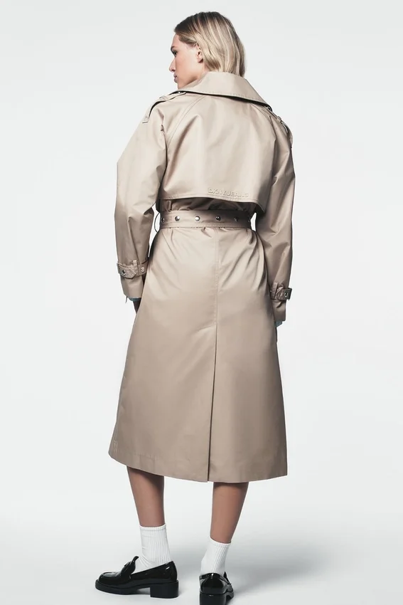 Polished with a Structured Silhouette, This Long Double-Breasted Trench Features Rivet Details and a Removable Belt for a Modern Military-Inspired Look. Crafted in a Cotton-Poly Gabardine Blend, It Delivers Tailored Comfort with Refined Durability.