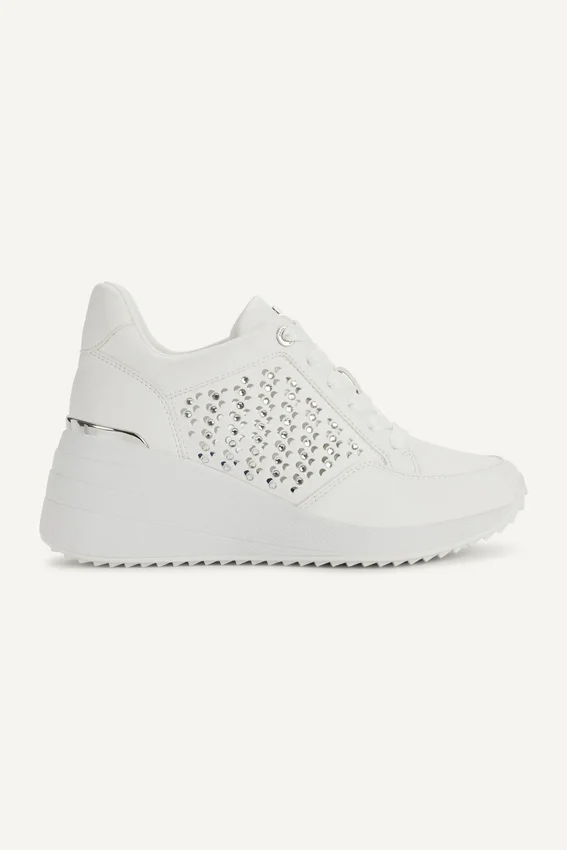 Lace-Up Style Low Top Design 2 3/4″ Wedge Heel Rhinestone Details at Sides Logo Details Upper: 60% Rubber (Pu), 40% Textile (48% Polyester + 52% Cotton) Outsole: 70% Leather, 30% Rubber Lining: 100% Textile (87% Chinlon, 13% Spandex) Origin: Imported Style: K1539784